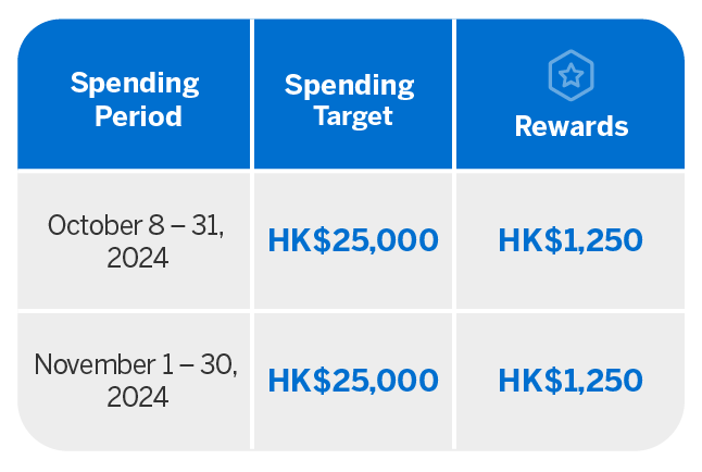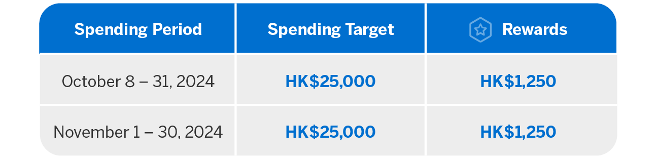 The reward is available once each month, giving you the opportunity to enjoy up to a total of HK$2,500 statement credit during the promotion period.
