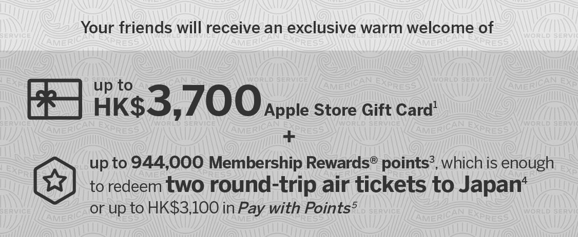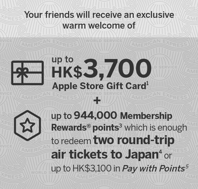 Conversion rate accurate as of July 2025 and on the basis of HK$10 Pay with Points can be redeemed by 3,000 Membership Rewards points. Pay with Points Terms and Conditions apply. |