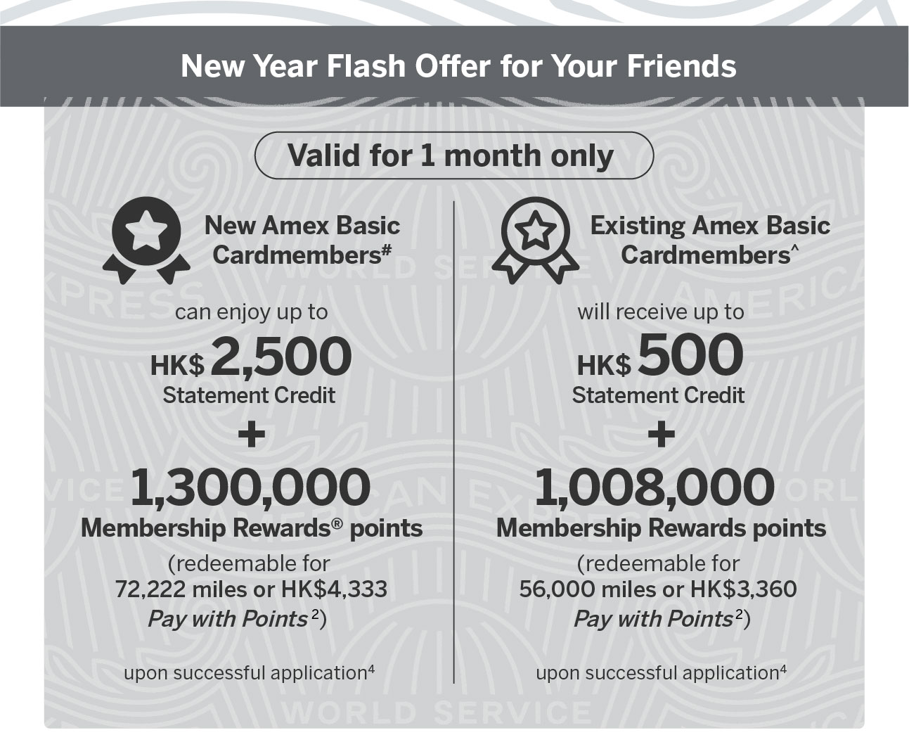 “New American Express Basic Cardmembers” refer to Basic Cardmembers who are NOT currently holding or who have NOT held or cancelled any approved Basic Credit Card or Charge Card issued by American Express Hong Kong within the past 12 months from the date of this application. |