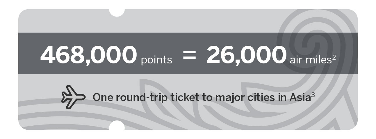 Conversion rate accurate as of December 2025 and on the basis of 1 mile can be redeemed by 18 Membership Rewards points; HK$10 Pay with Points can be redeemed by 3,000 Membership Rewards points. Membership Rewards Points Terms and Conditions and Pay with Points Terms and Conditions apply. |
