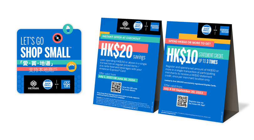 The Shop Small Year-round Offer is supported by multiple market channels, including a Shop Small interactive map that makes it even easier for our Cardmembers to know and find your business. All you need to do is honor the instant HK$20 savings# to Cardmembers at checkout.