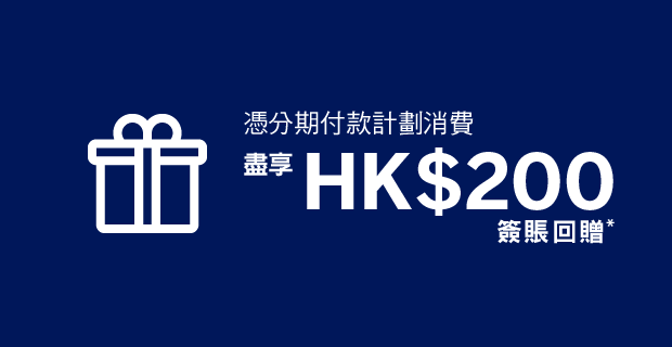 由即日起至2025年3⽉13⽇,您只需憑已登記之美國運通卡親身於參與商戶使用美國運通免息分期付款計劃並單一簽賬淨值滿HK$2,000或以上, 即可獲享HK$200簽賬回贈*。