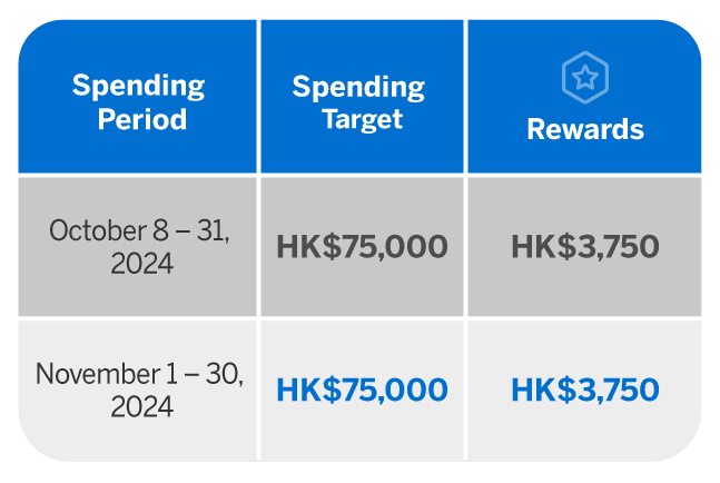 The reward is available once each month, giving you the opportunity to enjoy up to a total of HK$7,500 statement credit during the promotion period.