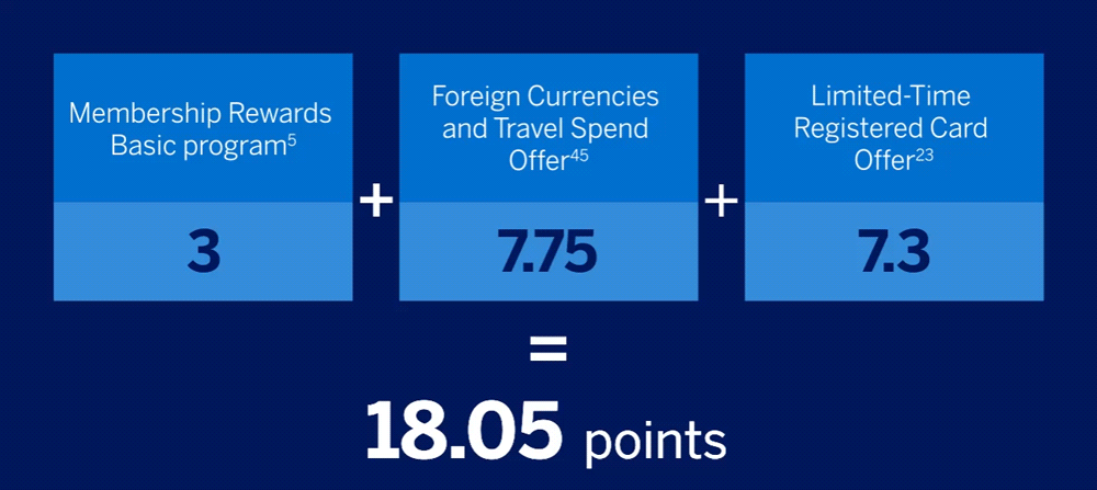 - “0.75X Additional Bonusing (Offer 1)”: During the Foreign Currencies and Travel Spend Offer Promotion Period (as defined below) and after successfully completing the enrollment to Offer 1, the Enrolled Cardmembers (as defined below) will start earning additional 0.75 American Express Membership Rewards points for: