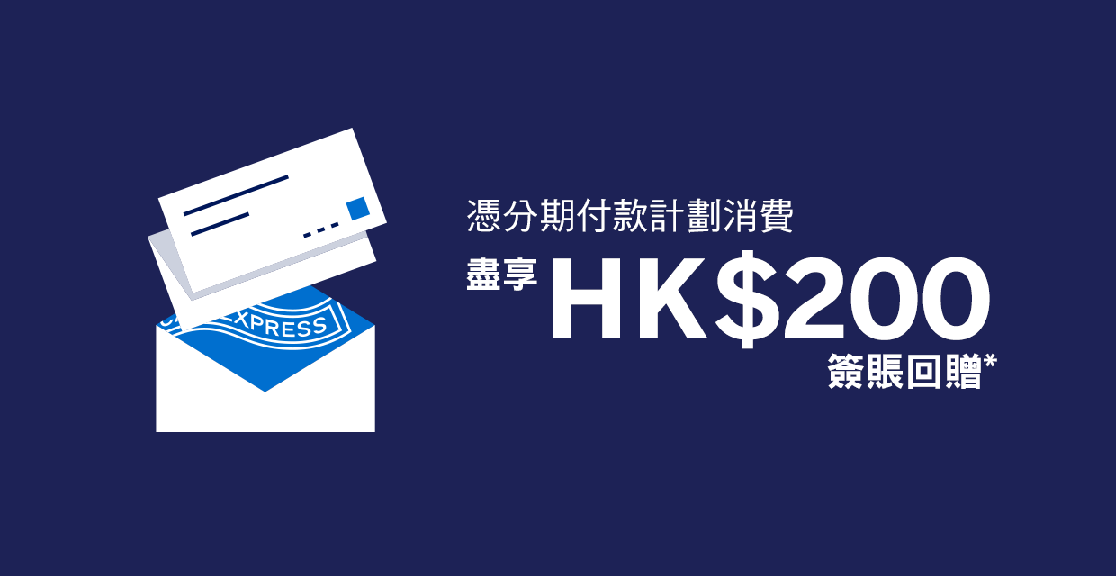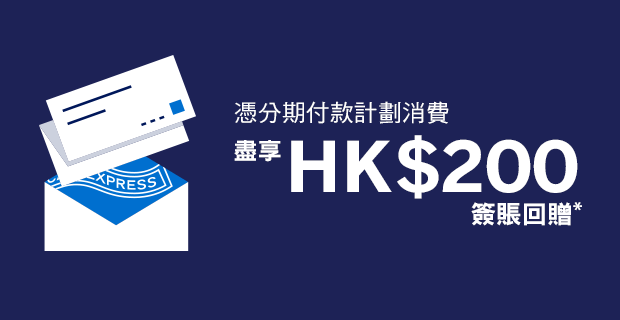 使用美國運通免息分期付款計劃即享HK$200簽賬回贈