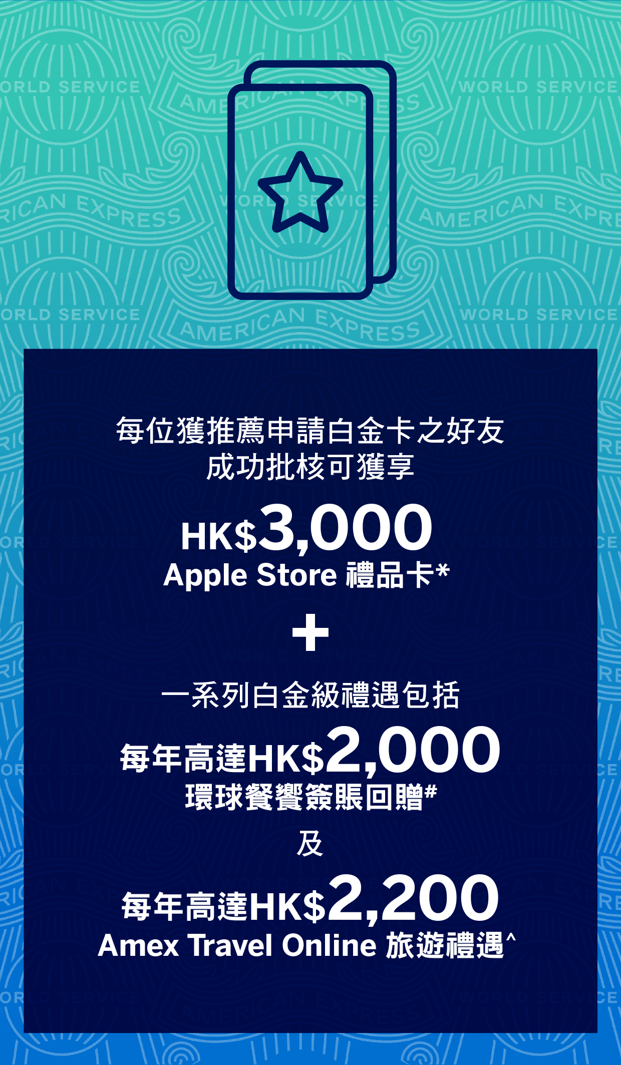 把握最後機會,與好友分享白金級禮遇並一同賺取高達HK$18,000 Apple Store禮品卡!優惠期至2023年10月9日。